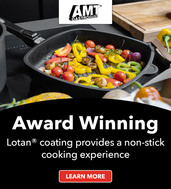 Voted *“The world’s best pan”, according to VKD, largest German Chefs Association. AMT has earned this praise for good reason. These premium pans produce even heat distribution for perfect cooking results. Featuring revolutionary Lotan® coating for a pleasurable, non-stick cooking experience, and the quickest clean-up imaginable. Available in both induction and non-induction options, it’s time to ‘UP your game’ and stock your kitchen with the very best from AMT.