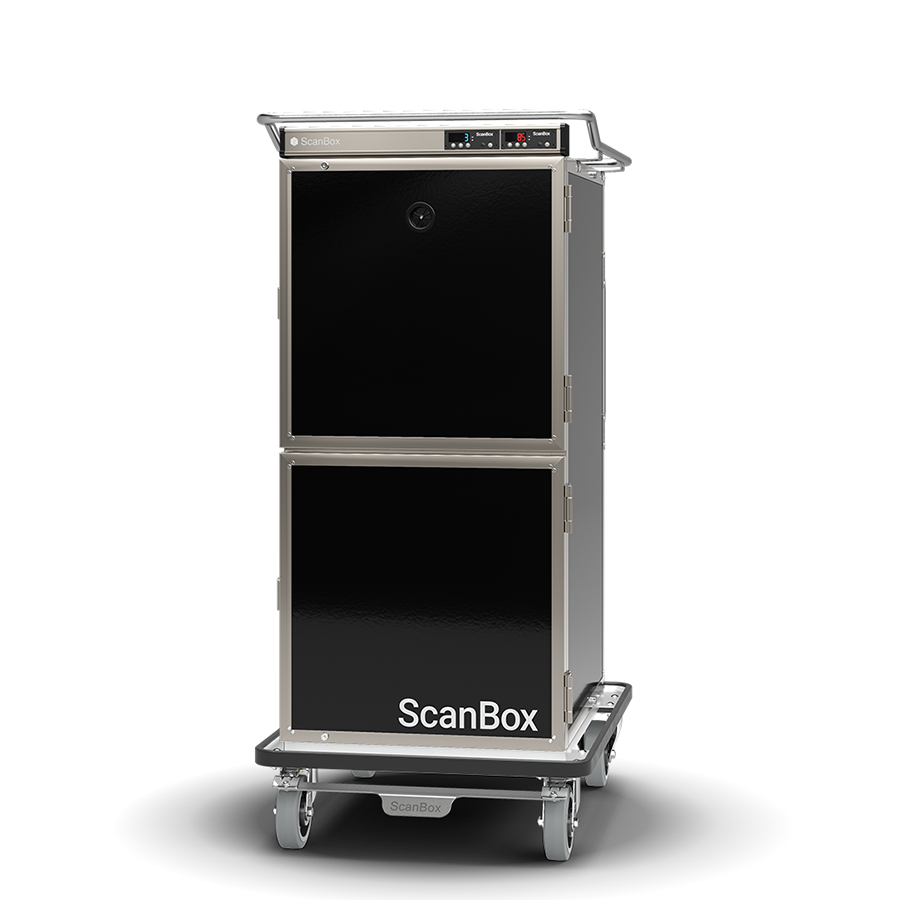 Banquet Line Combo CC06+HF06 is a light weight, yet heavy duty, cart for holding and transportation of hot and cold food with GN2/1 capacity. One cart but two separate compartments, one hot and one cold, that each hold 6 runners and a user friendly temperature controller with infinitely variable temperature setting. Fan heating system and compressor cooling system for fast and uniform temperatures up to +90°C and down to +3°C respectively. Total capacity of 12 GN2/1 or 24 GN1/1 containers given 65mm CC. Detachable U-shaped runners offer safe handling, easy cleaning and optimal temperature distribution. Other features are adjustable ventilation for optimal moisture control, ergonomic push/pull handles and easy-to-roll 160mm castors. A ScanBox is a Scandinavian designed product made for both back and front of house, especially with the Signature option with the possibility to customize the exterior design.