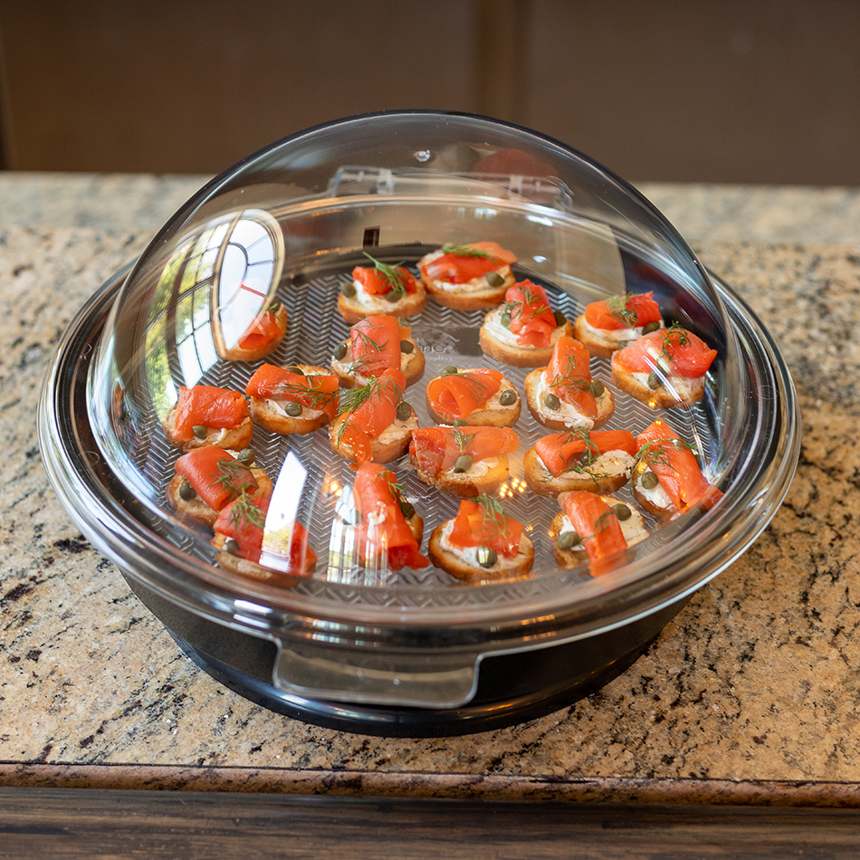 Sample Dome self-serve displays and food covers help keep your food items fresh and protected. The see-thru, clear acrylic domes provide an unobstructed presentation of the food, while providing a protective barrier from dust, dirt, germs, and other contaminants.