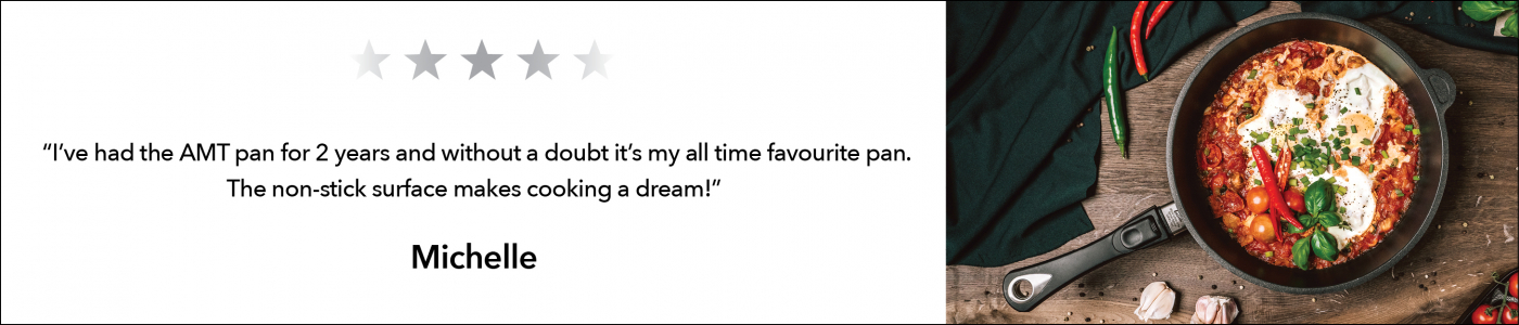 The excellent quality of the AMT cookware line has been confirmed many times by independent authorities and numerous awards. *“The world’s best pan”, according to VKD, largest German Chefs Association.